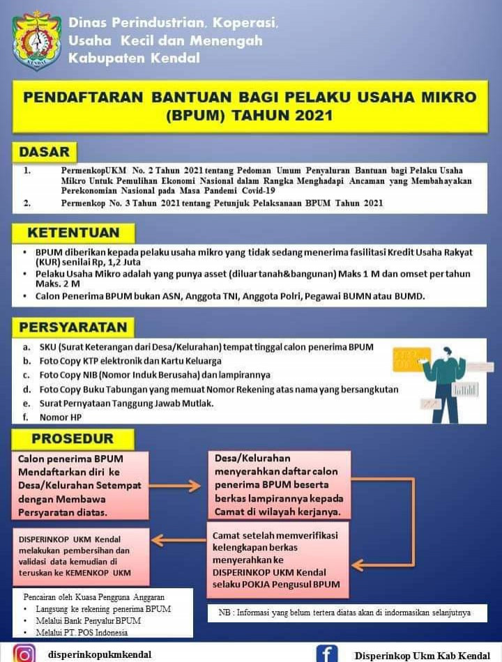 Kabar dibukanya pendaftaran Bantuan Pelaku Usaha Mikro (BPUM) Tahun 2021 untuk pelaku UMKM di Kabupaten Kendal yang diinformasikan oleh Dinas Perindustrian Koperasi Usaha Kecil dan Menengah,(Disperinkop UKM) Kabupaten Kedal, telah menyebarluas ke tengah masyarakat. Masyarakat pelaku usaha mikro di Desa Winong sendiri, sangat antusias dengan kabar tersebut. Hingga hari terakhir ini, sudah 82 orang pelaku usaha yang telah mendaftar BPUM. Pendaftaran BPUM yang dilakukan oleh Pemerintah Desa Winong telah dibuka sejak tanggal 9 April 2021 hingga 15 April 2021. Syarat untuk mendaftar BPUM meliputi: